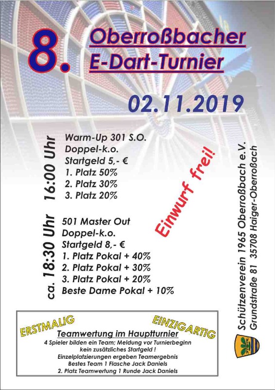 8. Oberroßbacher E-Dartturnier am 02.November